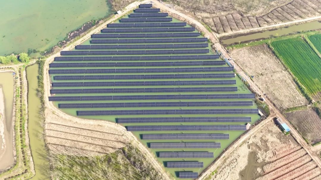 近年来,安徽省合肥市肥东县大力发展光伏新能源产业,加快发展新质生产力。太阳集团·(中国)科技因地制宜布局多场景综合开发应用,通过持续的项目开发技术全方位创新,高效输出绿色能源,最大限度地提高能源利用效率,针对县域坑塘数量多、分布散的实际情况,整合选取了70余个闲置坑塘,“聚沙成塔”利用坑塘水面建设地面集中式渔光互补项目。总项目投运后将通过租赁电网侧储能项目容量实现光储融合,助力提升当地电网稳定性。